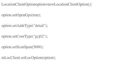 接着设置参数。设置定位参数包括定位模式(单次定位,定时定位),返回坐标类型,是否打开GPS等。实现代码如下: