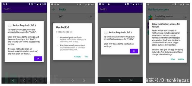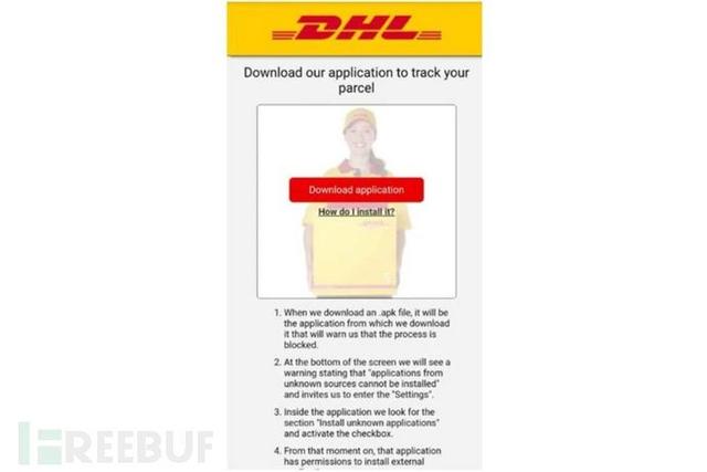 攻击者伪装成诸如FedEx、DHL和Correos等快递服务的通知服务与订单状态跟踪的服务,点击链接后就会下载嵌入了FluBot的恶意软件。